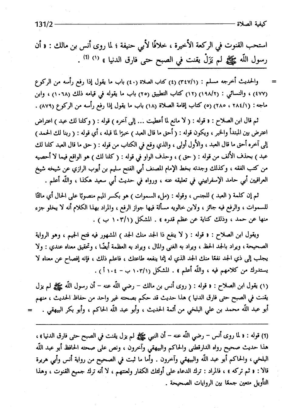اسْتحبَّ الْقُنُوت فِي الرَّكْعَة الْأَخِيرَة خلافًا لأبي حنيفَة لما روى أنس بن مَالك أَن رَسُول الله صلى الله عَلَيْهِ وَسلم لم يزل يقنت فِي الصُّبْح حَتَّى فَارق الدُّنْيَا