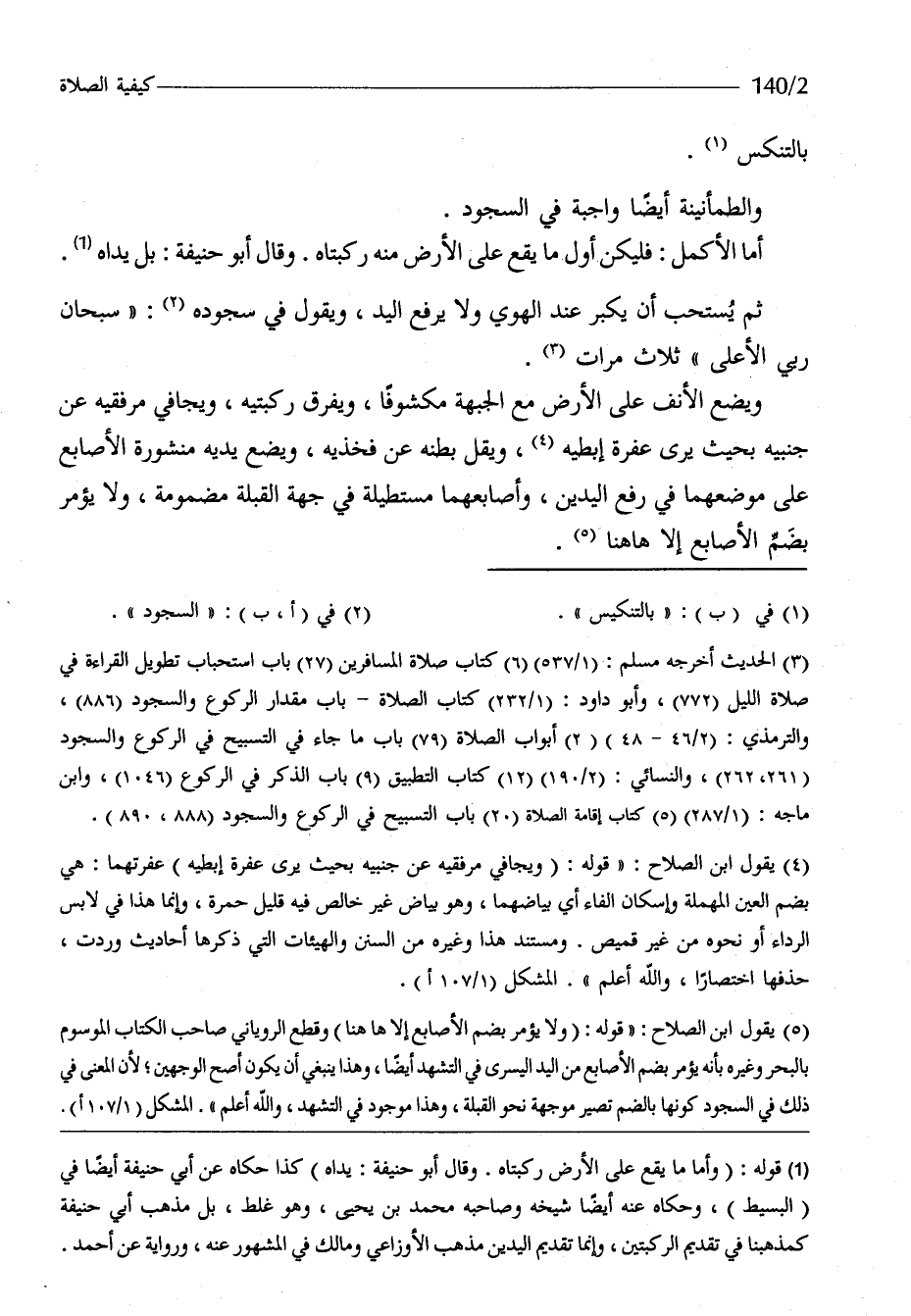 أما الْأَكْمَل فَلْيَكُن أول مَا يَقع على الأَرْض مِنْهُ ركبتاه وَقَالَ أَبُو حنيفَة بل يَدَاهُ