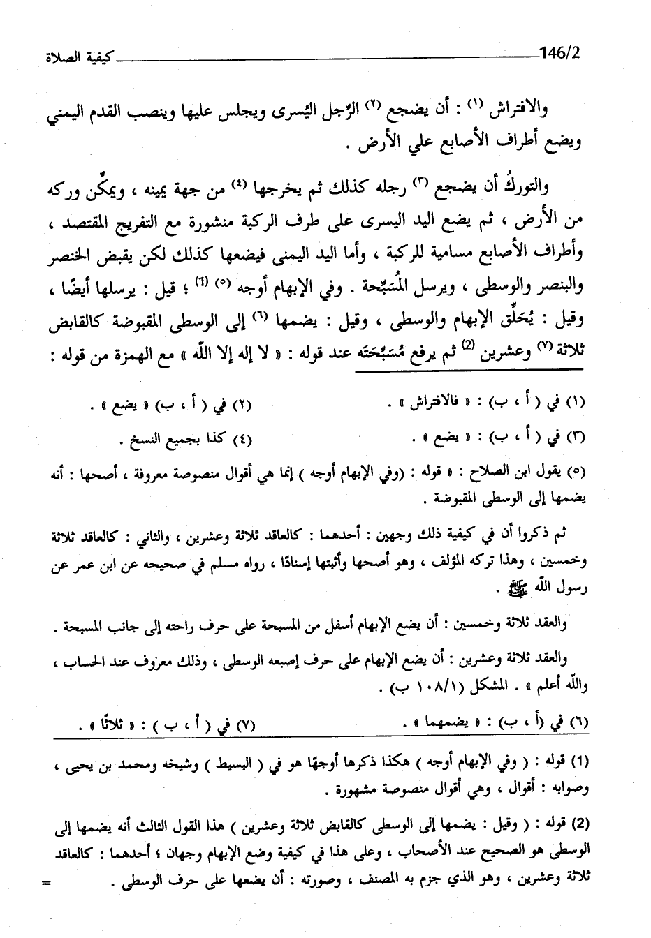 والتورك أَن يضجع رجله كَذَلِك ثمَّ يُخرجهَا من جِهَة يَمِينه وَيُمكن وركه من الأَرْض ثمَّ يضع الْيَد الْيُسْرَى على طرف الرّكْبَة منشورة مَعَ التَّفْرِيج المقتصد وأطراف الْأَصَابِع مسامية للركبة وَأما الْيَد الْيُمْنَى فَيَضَعهَا كَذَلِك لَكِن يقبض الْخِنْصر والبنصر وَالْوُسْطَى وَيُرْسل المسبحة وَفِي الْإِبْهَام أوجه قيل يرسلها أَيْضا وَقيل يحلق الْإِبْهَام وَالْوُسْطَى وَقيل يضمها إِلَى الْوُسْطَى المقبوضة كالقابض ثَلَاثَة وَعشْرين ثمَّ يرفع مسبحته عِنْد قَوْله لَا إِلَه إِلَّا الله مَعَ الْهمزَة من قَوْله