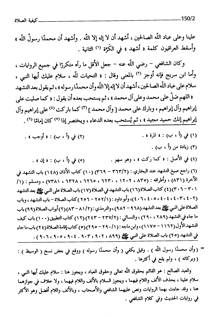 وَكَانَ الشَّافِعِي رَضِي الله عَنهُ جعل الْأَقَل مَا رَآهُ متكررا فِي جَمِيع الرِّوَايَات وَأما ابْن سُرَيج فَإِنَّهُ أوجز بِالْمَعْنَى وَقَالَ التَّحِيَّات لله سَلام عَلَيْك أَيهَا النَّبِي سَلام على عباد الله الصَّالِحين أشهد أَن لَا إِلَه إِلَّا الله وَأَن مُحَمَّدًا رَسُوله ثمَّ يَقُول بعد التَّشَهُّد اللَّهُمَّ صل على مُحَمَّد وعَلى آل مُحَمَّد ثمَّ يسْتَحبّ بعده أَن يَقُول كَمَا صليت على إِبْرَاهِيم وَآل إِبْرَاهِيم وَبَارك على مُحَمَّد وَآل مُحَمَّد كَمَا باركت على إِبْرَاهِيم وَآل إِبْرَاهِيم إِنَّك حميد مجيد ثمَّ يسْتَحبّ بعده الدُّعَاء ويختصر إِذا كَانَ إِمَامًا