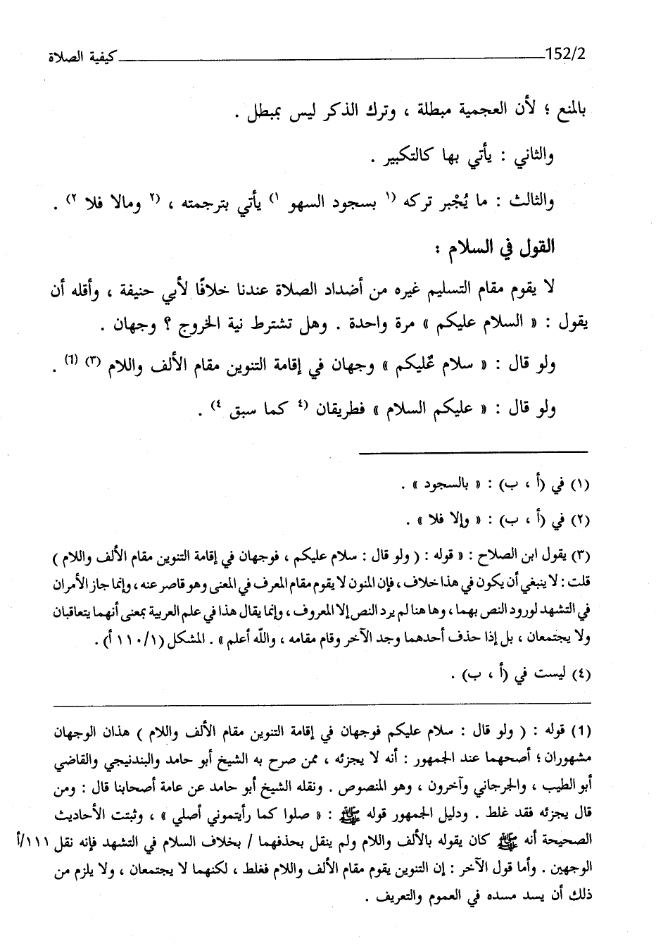 لَا يقوم مقَام التَّسْلِيم غَيره من أضداد الصَّلَاة عندنَا خلافًا لأبي حنيفَة وَأقله أَن يَقُول السَّلَام عَلَيْكُم مرّة وَاحِدَة وَهل تشْتَرط نِيَّة الْخُرُوج وَجْهَان