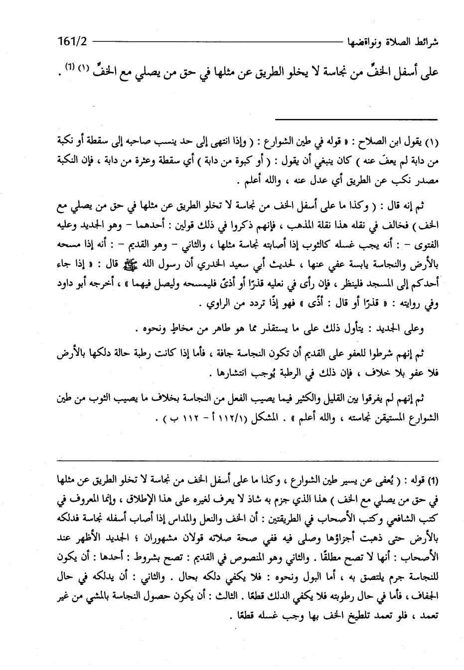 على أَسْفَل الْخُف من نَجَاسَة لَا يَخْلُو الطَّرِيق عَن مثلهَا فِي حق من يُصَلِّي مَعَ الْخُف