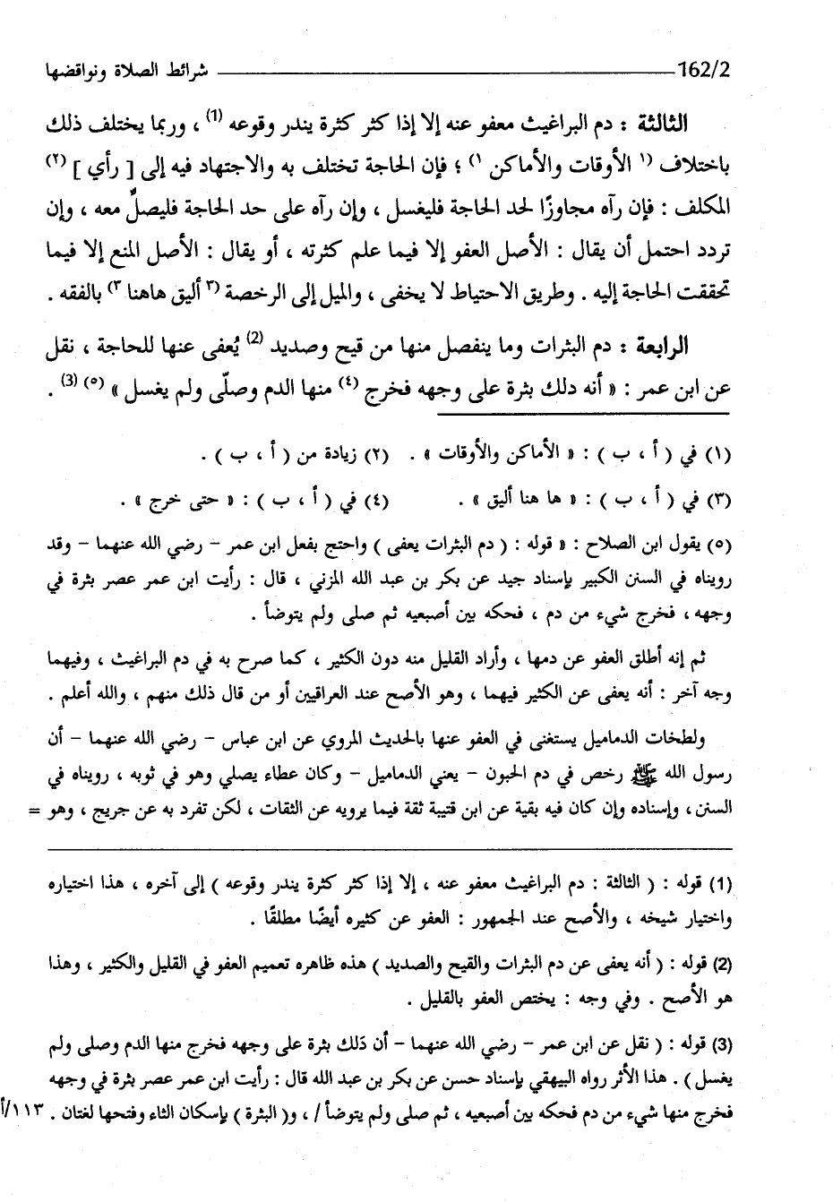 الرَّابِعَة دم البثرات وَمَا ينْفَصل مِنْهَا من قيح وصديد يُعْفَى عَنْهَا للْحَاجة نقل عَن ابْن عمر أَنه دلك بثرة على وَجهه فَخرج مِنْهَا الدَّم وَصلى وَلم يغسل