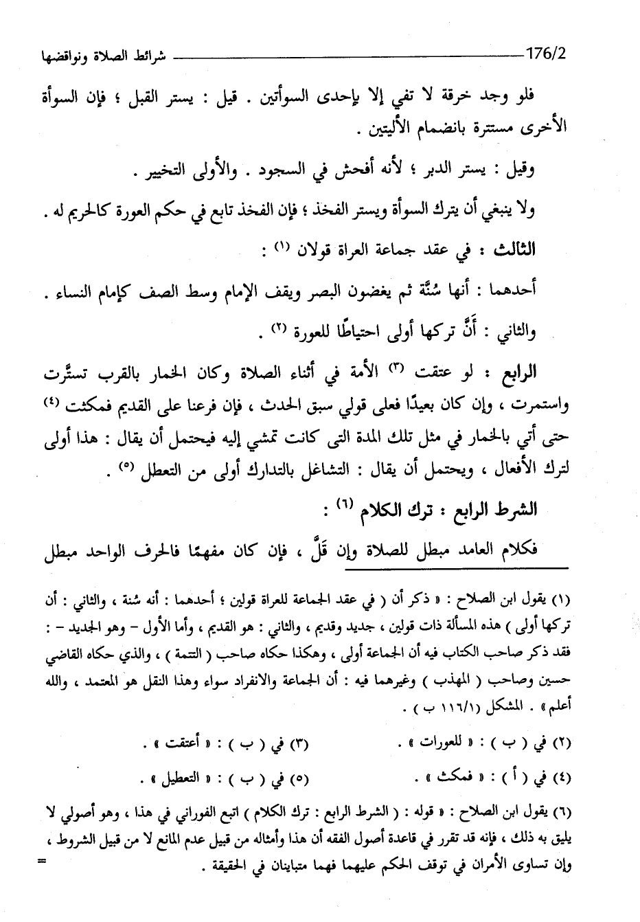 الشَّرْط الرَّابِع ترك الْكَلَام