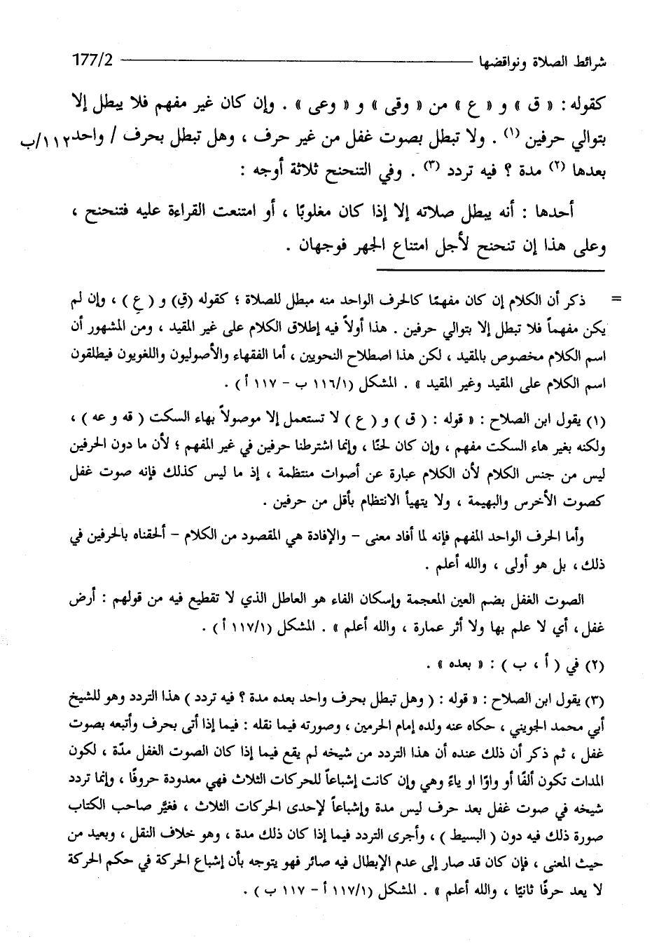 كَقَوْلِه ق وع من وقى وعى وَإِن كَانَ غير مفهم فَلَا يبطل إِلَّا بتوالي حرفين وَلَا تبطل بِصَوْت غفل من غير حرف وَهل تبطل بِحرف وَاحِد بعْدهَا مُدَّة فِيهِ تردد وَفِي التنحنح ثَلَاثَة أوجه