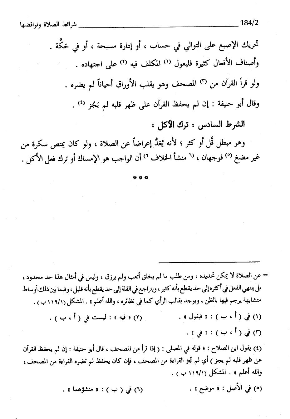وَهُوَ مُبْطل قل أَو كثر لِأَنَّهُ يعد إعْرَاضًا عَن الصَّلَاة وَلَو كَانَ يمتص سكرة من غير مضغ فَوَجْهَانِ منشأ الْخلاف أَن الْوَاجِب هُوَ الْإِمْسَاك أَو ترك فعل الْأكل