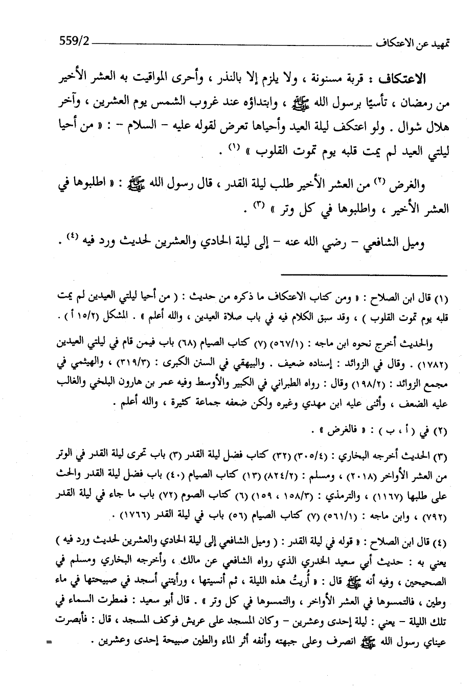 الِاعْتِكَاف قربَة مسنونة وَلَا يلْزم إِلَّا بِالنذرِ وَأَحْرَى الْمَوَاقِيت بِهِ الْعشْر الْأَخير من رَمَضَان تأسيا برَسُول الله صلى الله عَلَيْهِ وَسلم وابتداؤه عِنْد غرُوب الشَّمْس يَوْم الْعشْرين وَآخر هِلَال شَوَّال وَلَو اعْتكف لَيْلَة الْعِيد وأحياها تعرض لقَوْله عَلَيْهِ السَّلَام من أَحْيَا لَيْلَتي الْعِيد لم يمت قلبه يَوْم تَمُوت الْقُلُوب