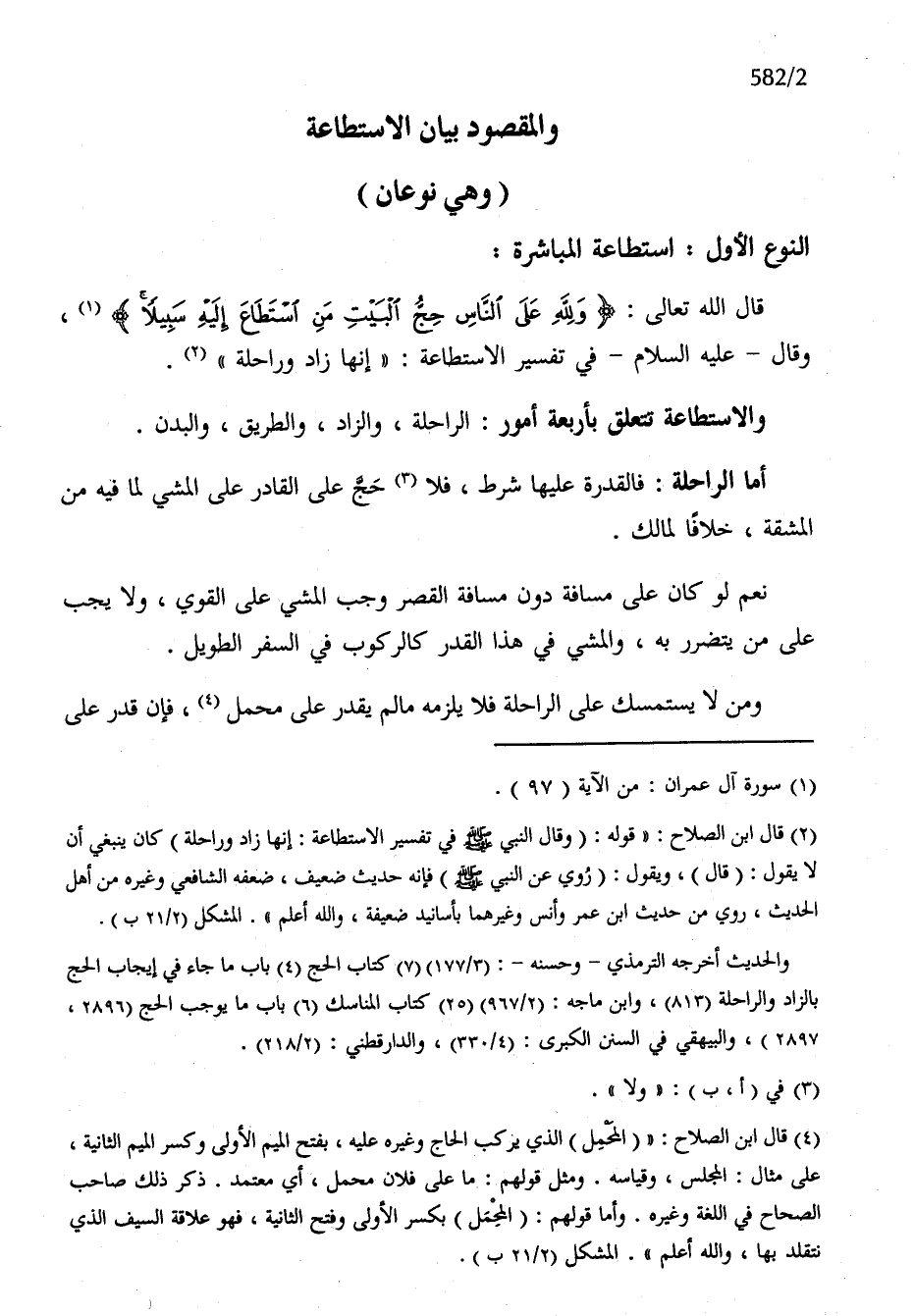 الْمَقْصُود بَيَان الِاسْتِطَاعَة وَهِي نَوْعَانِ