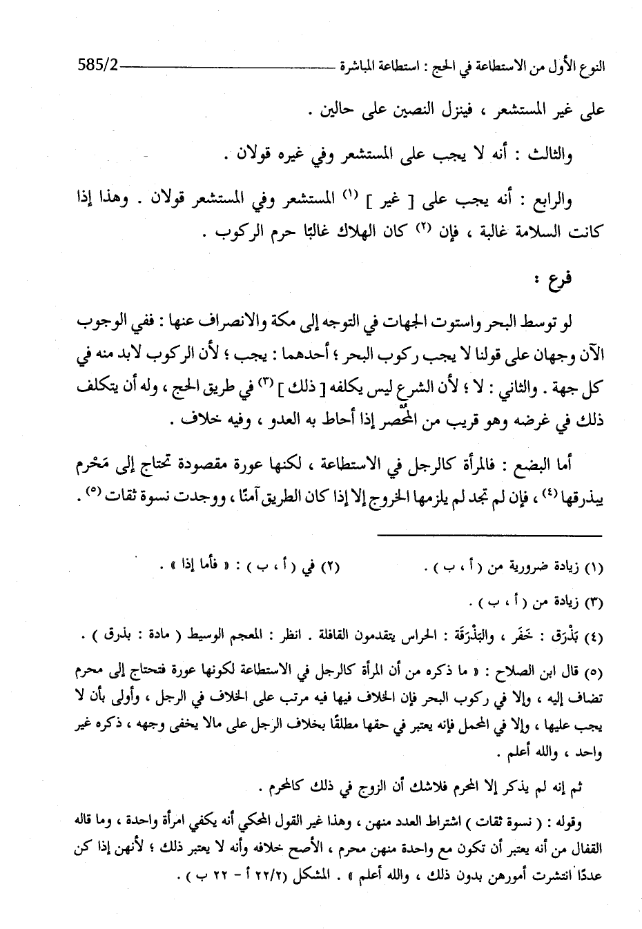 لَو توَسط الْبَحْر واستوت الْجِهَات فِي التَّوَجُّه إِلَى مَكَّة والانصراف عَنْهَا فَفِي الْوُجُوب الْآن وَجْهَان على قَوْلنَا لَا يجب ركون الْبَحْر أَحدهمَا يجب لِأَن الرّكُوب لَا بُد مِنْهُ فِي كل جِهَة وَالثَّانِي لَا لِأَن الشَّرْع لَيْسَ يكلفه ذَلِك فِي طَرِيق الْحَج وَله أَن يتَكَلَّف ذَلِك فِي غَرَضه وَهُوَ قريب منن الْمحصر إِذا أحَاط بِهِ الْعَدو وَفِيه خلاف