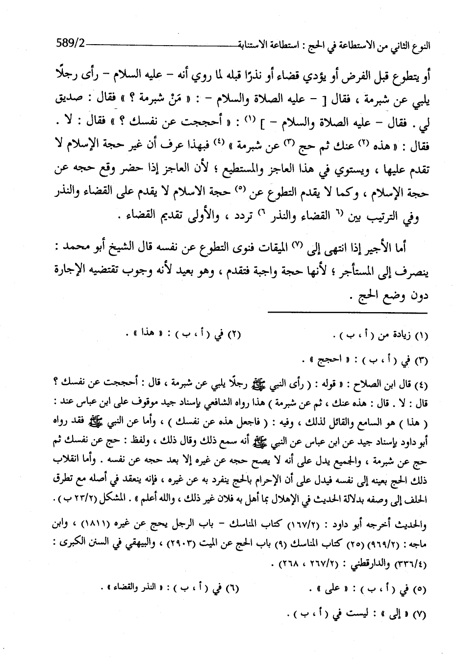 فَقَالَ هَذِه عَنْك ثمَّ حج عَن شبْرمَة فَبِهَذَا عرف أَن غير حجَّة الْإِسْلَام لَا تقدم عَلَيْهَا وَيَسْتَوِي فِي هَذَا الْعَاجِز والمستطيع لِأَن الْعَاجِز إِذا حضر وَقع حجه عَن حجَّة الْإِسْلَام وكما لَا يقدم التَّطَوُّع عَن حجَّة الْإِسْلَام لَا يقدم على الْقَضَاء وَالنّذر وَفِي التَّرْتِيب بَين الْقَضَاء وَالنّذر تردد وَالْأولَى تَقْدِيم الْقَضَاء