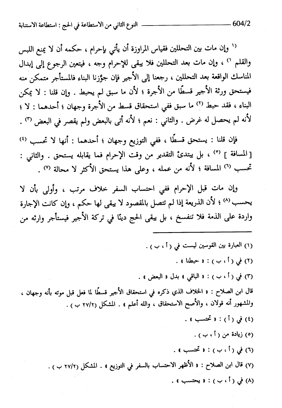 وَإِن مَاتَ بَين التحللين فَقِيَاس المراوزة أَن يَأْتِي بِإِحْرَام حكمه أَن لَا يمْنَع اللّبْس والقلم وَإِن مَاتَ بعد التحللين فَلَا يبْقى للْإِحْرَام وَجه فَيتَعَيَّن الرُّجُوع إِلَى إِبْدَال الْمَنَاسِك الْوَاقِعَة بعد التحللين رَجعْنَا إِلَى الْأَجِير فَإِن جَوَّزنَا الْبناء فالمستأجر مُتَمَكن مِنْهُ فَيسْتَحق وَرَثَة الْأَجِير قسطا من الْأُجْرَة لِأَن مَا سبق لم يحبط وَإِن قُلْنَا لَا يُمكن الْبناء فقد حَبط مَا سبق فَفِي اسْتِحْقَاق قسط من الْأُجْرَة وَجْهَان أَحدهمَا لَا لِأَنَّهُ لم يحصل لَهُ غَرَض وَالثَّانِي نعم لِأَنَّهُ أَتَى بِالْبَعْضِ وَلم يقصر فِي الْبَعْض
