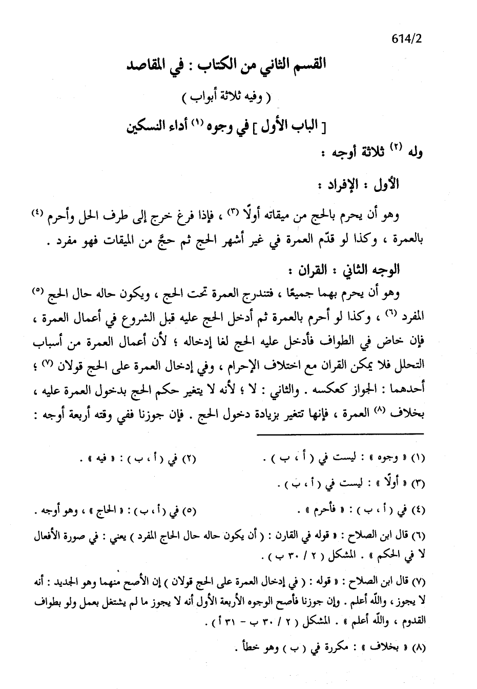 وَفِيه ثَلَاثَة أَبْوَاب - صَلَّى اللَّهُ عَلَيْهِ وَسَلَّم َ - الْبَاب الأول فِي وُجُوه أَدَاء النُّسُكَيْنِ وَله ثَلَاثَة أوجه - صَلَّى اللَّهُ عَلَيْهِ وَسَلَّم َ -