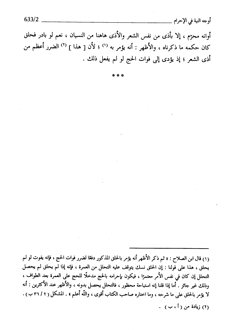 أَوَانه محرم إِلَّا بأذى من نفس الشّعْر والأذى هَاهُنَا من النسْيَان نعم لَو بَادر فحلق كَانَ حكمه مَا ذَكرْنَاهُ وَالْأَظْهَر أَنه يُؤمر بِهِ لِأَن هَذَا الضَّرَر أعظم من أَذَى الشّعْر إِذْ يُؤدى إِلَى فَوَات الْحَج لَو لم يفعل ذَلِك