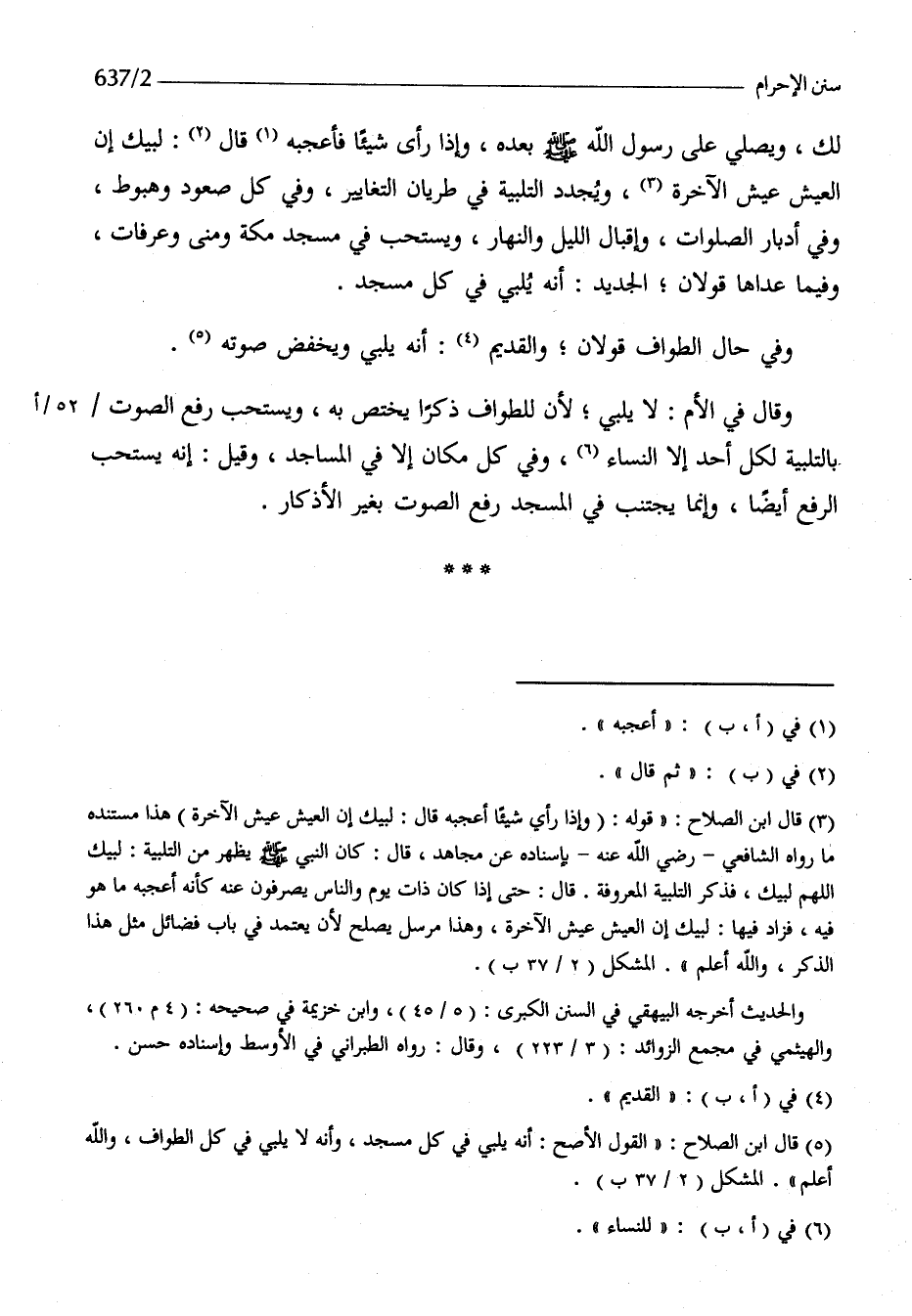 لَك وَيُصلي على رَسُول الله صلى الله عَلَيْهِ وَسلم بعده وَإِذا رأى شَيْئا فأعجبه قَالَ لبيْك إِن الْعَيْش عَيْش الْآخِرَة ويجدد التَّلْبِيَة فِي طريان التغايير وَفِي كل صعُود وهبوط وَفِي أدبار الصَّلَوَات وإقبال اللَّيْل وَالنَّهَار وَيسْتَحب فِي مَسْجِد مَكَّة منى وعرفات وَفِيمَا عَداهَا قَولَانِ الْجَدِيد أَنه يُلَبِّي فِي كل مَسْجِد