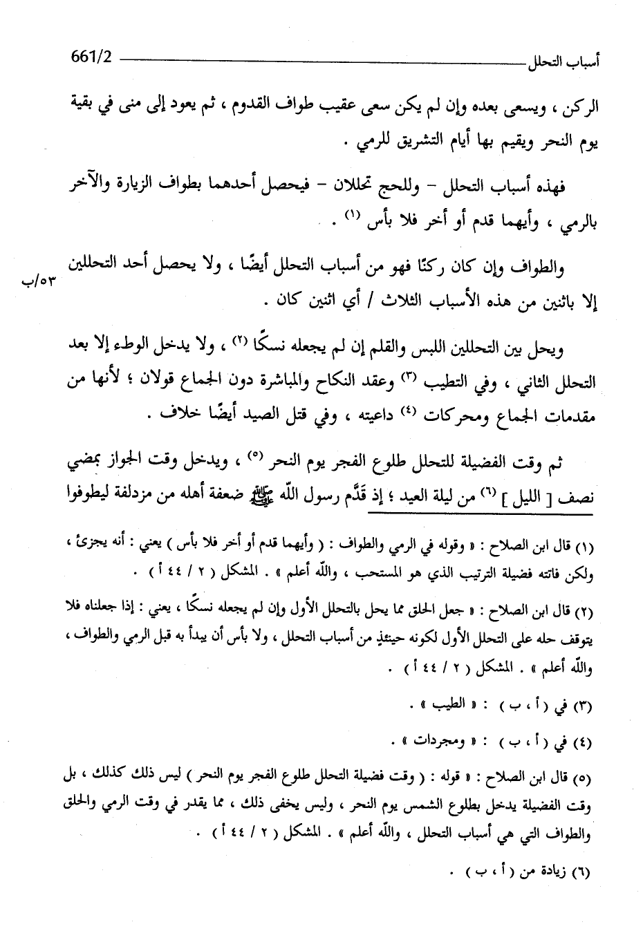 ثمَّ وَقت الْفَضِيلَة للتحلل طُلُوع الْفجْر يَوْم النَّحْر وَيدخل وَقت الْجَوَاز بِمُضِيِّ نصف اللَّيْل من لَيْلَة الْعِيد إِذْ قدم رَسُول الله صلى الله عَلَيْهِ وَسلم ضعفة أَهله من مُزْدَلِفَة ليطوفوا