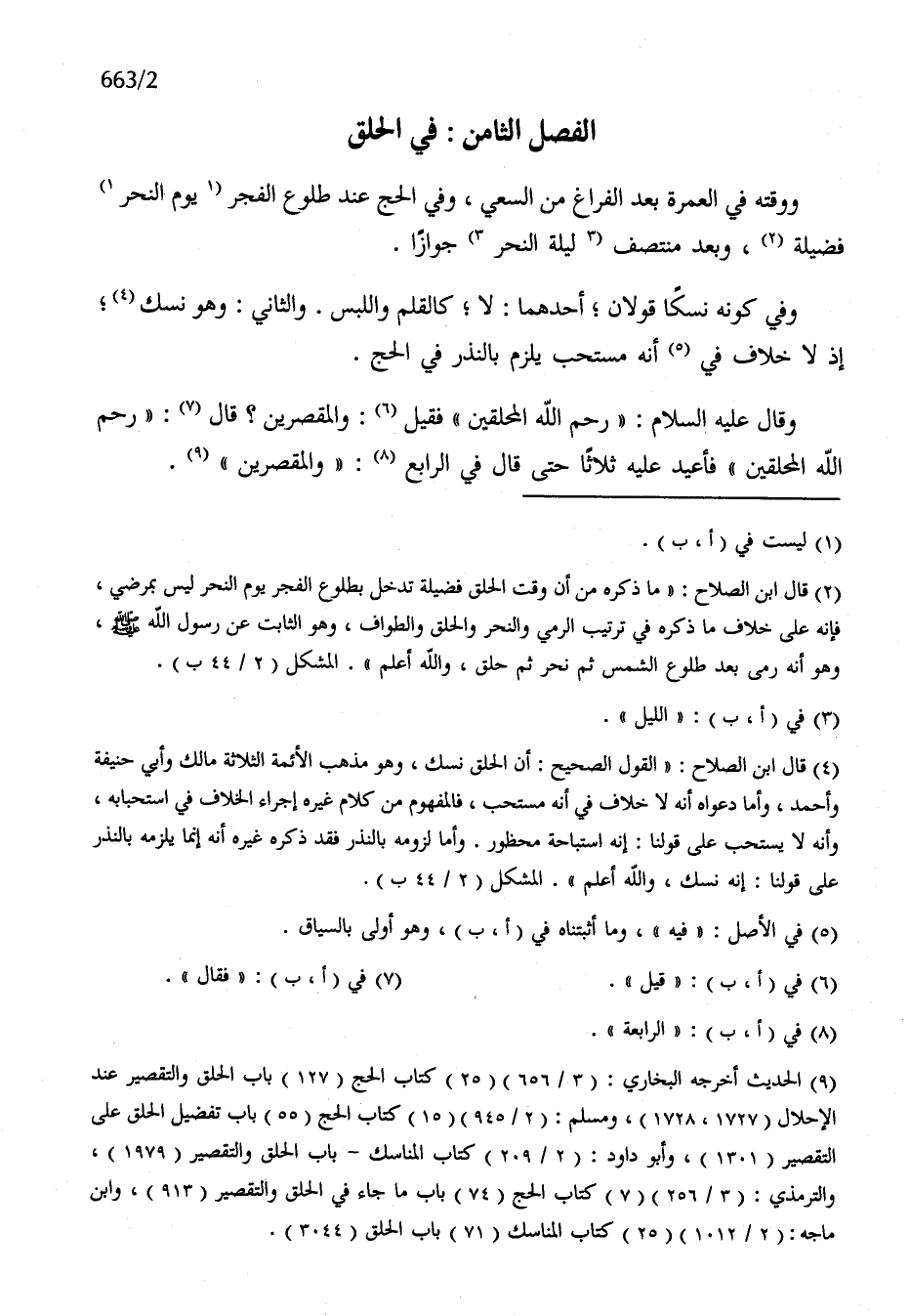 وَفِي كَونه نسكا قَولَانِ أَحدهمَا لَا كالقلم واللبس وَالثَّانِي وَهُوَ نسك إِذْ لَا خلاف فِي أَنه مُسْتَحبّ يلْزم بِالنذرِ فِي الْحَج