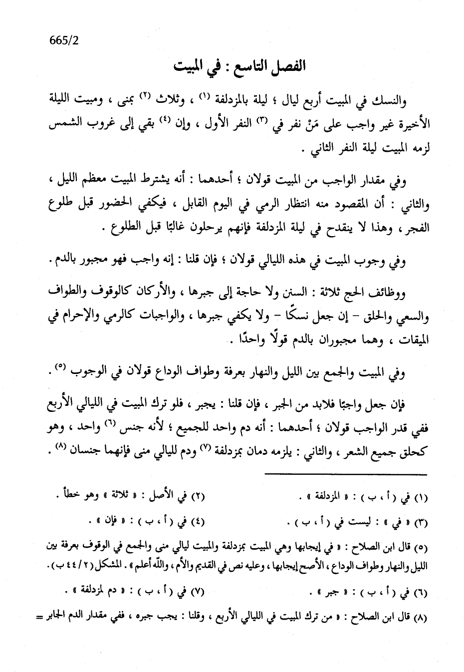 الْفَصْل التَّاسِع فِي الْمبيت