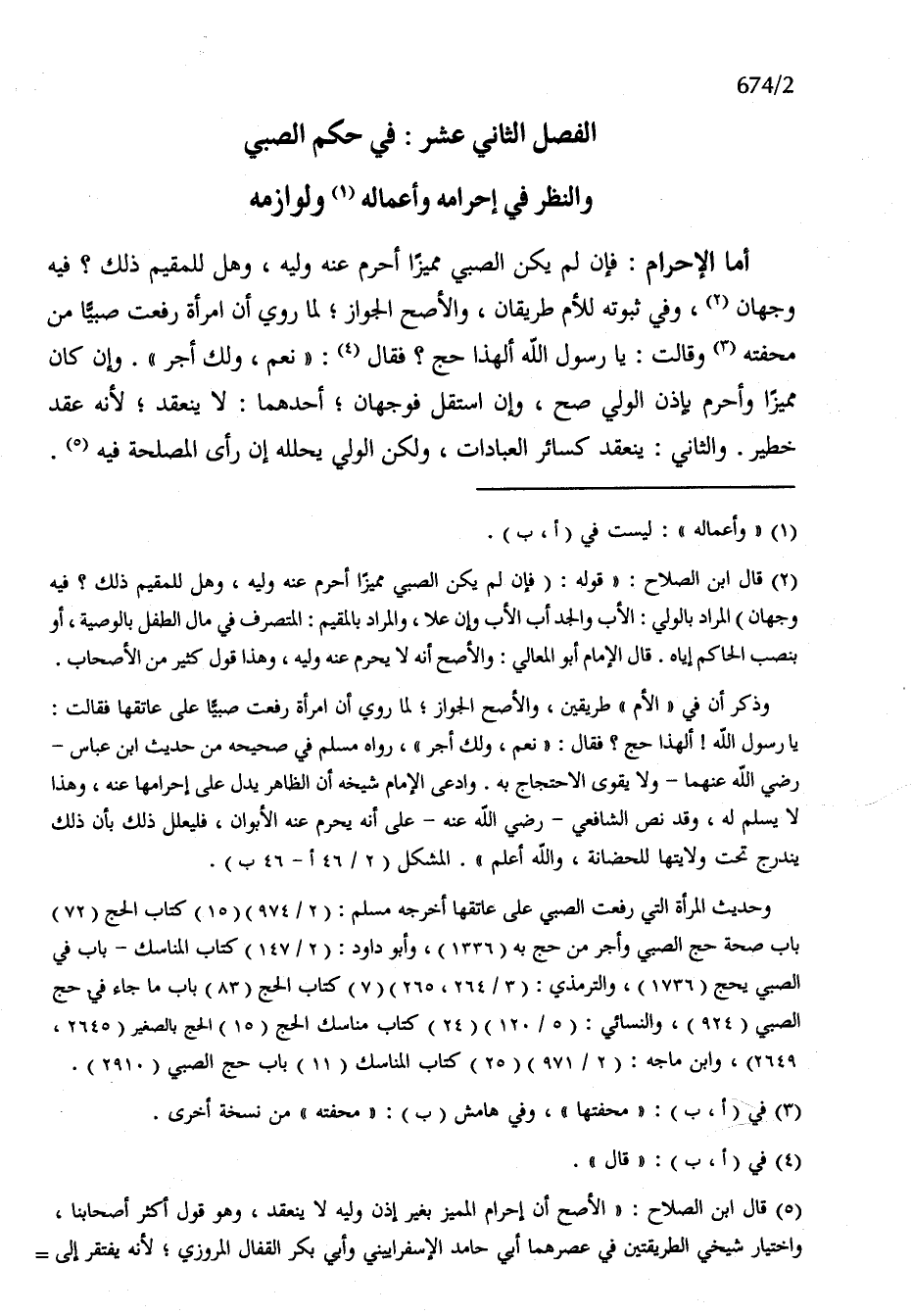 الْفَصْل الثَّانِي عشر فِي حكم الصَّبِي وَالنَّظَر فِي إِحْرَامه وأعماله ولوازمه