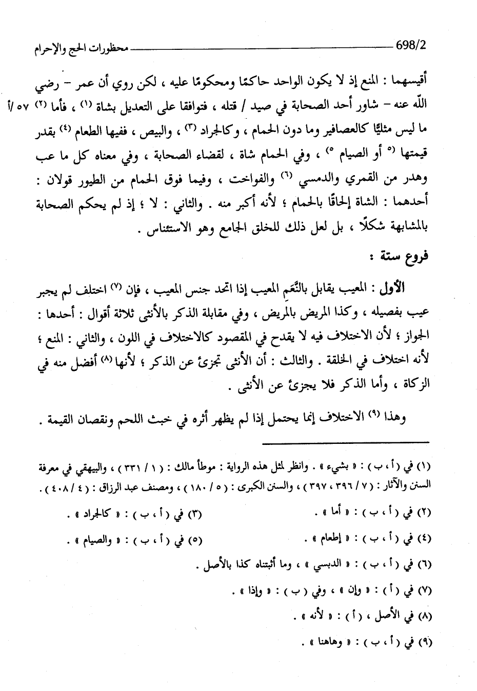 أقيسهما الْمَنْع إِذْ لَا يكون الْوَاحِد حَاكما ومحكوما عَلَيْهِ لَكِن رُوِيَ أَن عمر رَضِي الله عَنهُ شاور أحد الصَّحَابَة فِي صيد قَتله فتوافقا على التَّعْدِيل بِشَاة فَأَما مَا لَيْسَ مثلِيا كالعصافير وَمَا دون الْحمام وكالجراد والبيص فَفِيهَا الطَّعَام بِقدر قيمتهَا أَو الصّيام وَفِي الْحمام شَاة لقَضَاء الصَّحَابَة وَفِي مَعْنَاهُ كل مَا عب وهدر من الْقمرِي والدمسي والفواخت وَفِيمَا فَوق الْحمام من الطُّيُور قَولَانِ أَحدهمَا الشَّاة إِلْحَاقًا بالحمام لِأَنَّهُ أكبر مِنْهُ وَالثَّانِي لَا إِذْ لم يحكم الصَّحَابَة بالمشابهة شكلا بل لَعَلَّ ذَلِك لِلْخلقِ الْجَامِع وَهُوَ الِاسْتِئْنَاس