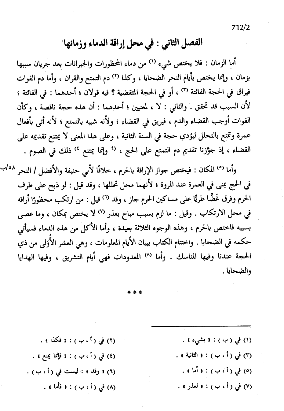 الْفَصْل الثَّانِي فِي مَحل إِرَاقَة الدِّمَاء وزمانها