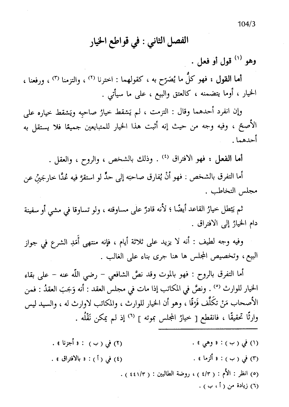 الْفَصْل الثَّانِي فِي قواطع الْخِيَار وَهُوَ قَول أَو فعل
