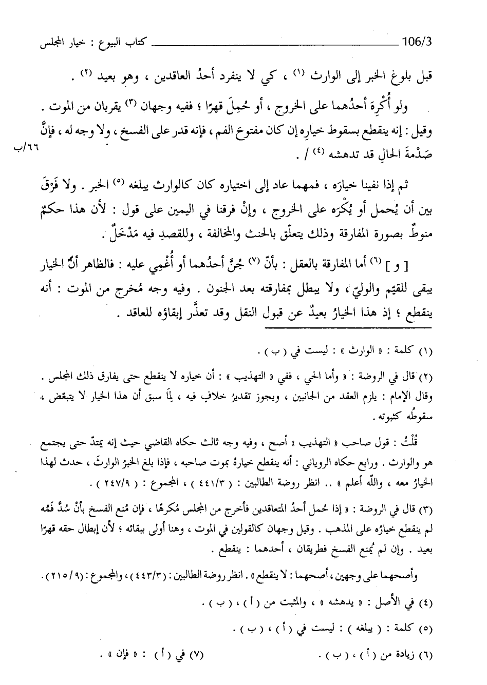 وَأما الْمُفَارقَة بِالْعقلِ بِأَن جن أَحدهمَا أَو أُغمي عَلَيْهِ فَالظَّاهِر أَن الْخِيَار يبْقى للقيم وَالْوَلِيّ وَلَا يبطل بمفارقته بعد الْجُنُون وَفِيه وَجه مخرج من الْمَوْت أَنه يَنْقَطِع إِذْ هَذَا الْخِيَار بعيد عَن قبُول النَّقْل وَقد تعذر إبقاؤه للعاقد