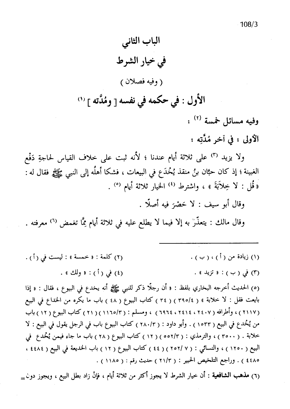 - صَلَّى اللَّهُ عَلَيْهِ وَسَلَّم َ - الْبَاب الثَّانِي فِي خِيَار الشَّرْط وَفِيه فصلان - صَلَّى اللَّهُ عَلَيْهِ وَسَلَّم َ -