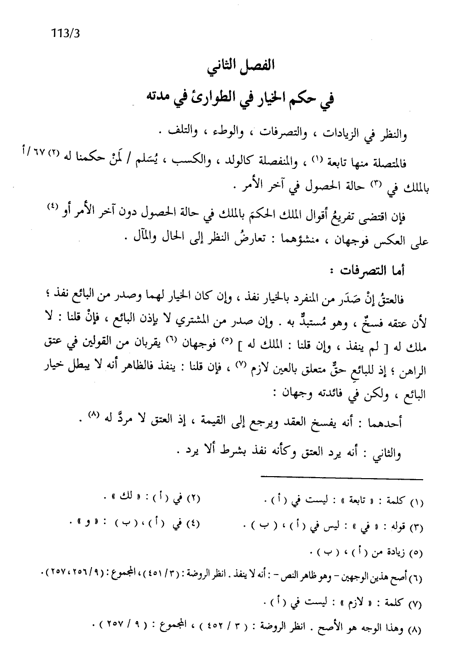 وَالنَّظَر فِي الزِّيَادَات والتصرفات وَالْوَطْء والتلف