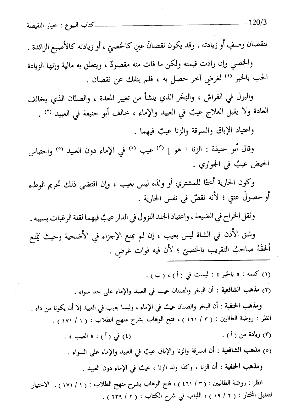 بِنُقْصَان وصف أَو زِيَادَته وَقد يكون نُقْصَان عين كالخصي أَو زِيَادَته كالإصبع الزَّائِدَة