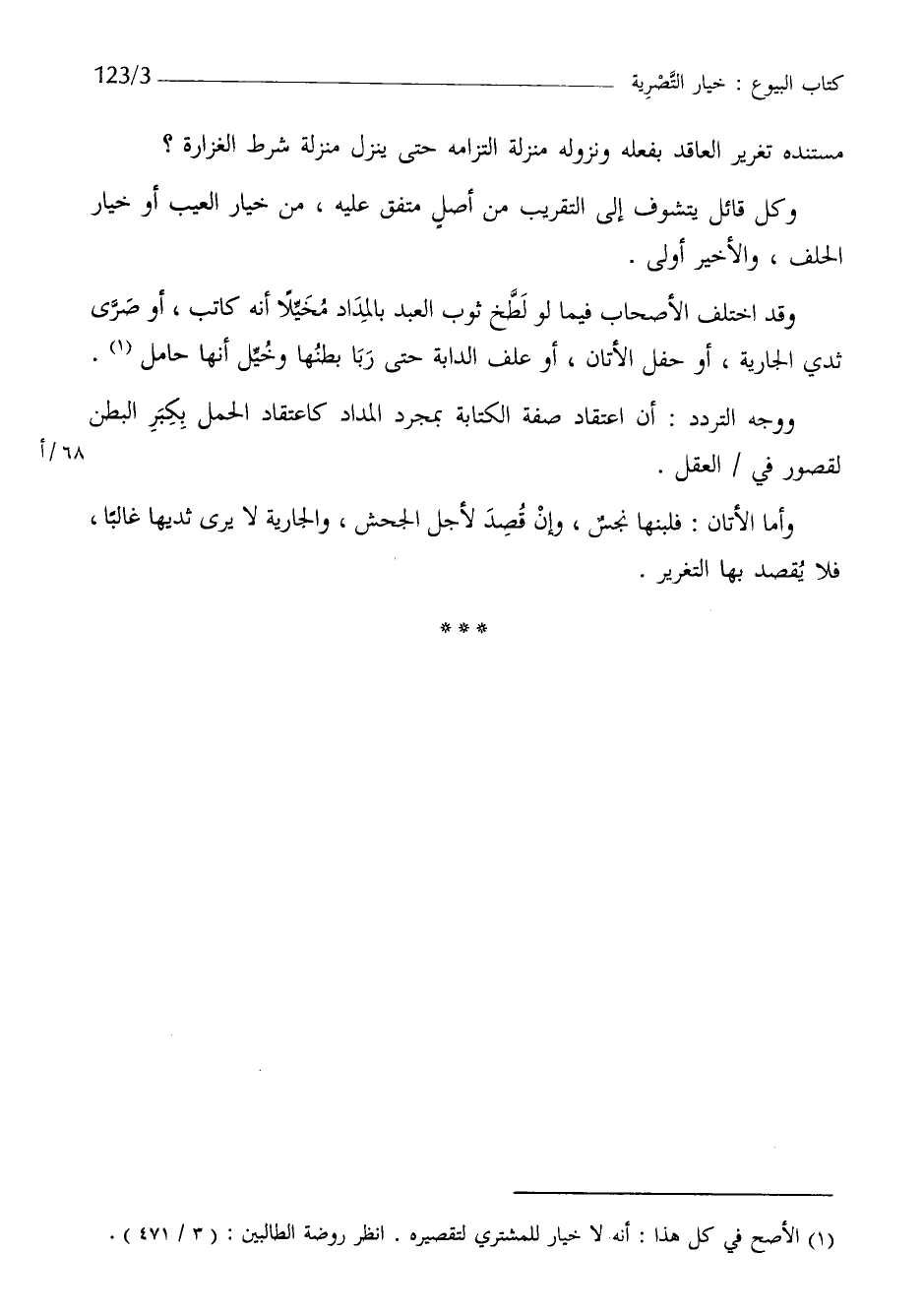وكل قَائِل يتشوف إِلَى التَّقْرِيب من اصل مُتَّفق عَلَيْهِ من خِيَار الْعَيْب أَو خِيَار الْحلف والأخير أولى