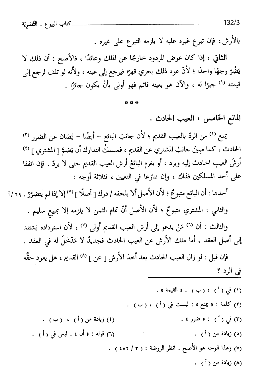يمْنَع من الرَّد بِالْعَيْبِ الْقَدِيم لَان جَانب البَائِع أَيْضا يصان عَن الضَّرَر الْحَادِث كَمَا صين جَانب المُشْتَرِي عَن الْقَدِيم فمسلك التَّدَارُك أَن يضم المُشْتَرِي أرش الْعَيْب الْحَادِث إِلَيْهِ وَيرد أَو يغرم البَائِع أرش الْعَيْب الْقَدِيم حَتَّى لَا يرد فَإِن اتفقَا على أحد المسلكين فَذَاك وان تنَازعا فِي التَّعْيِين فَثَلَاثَة أوجه