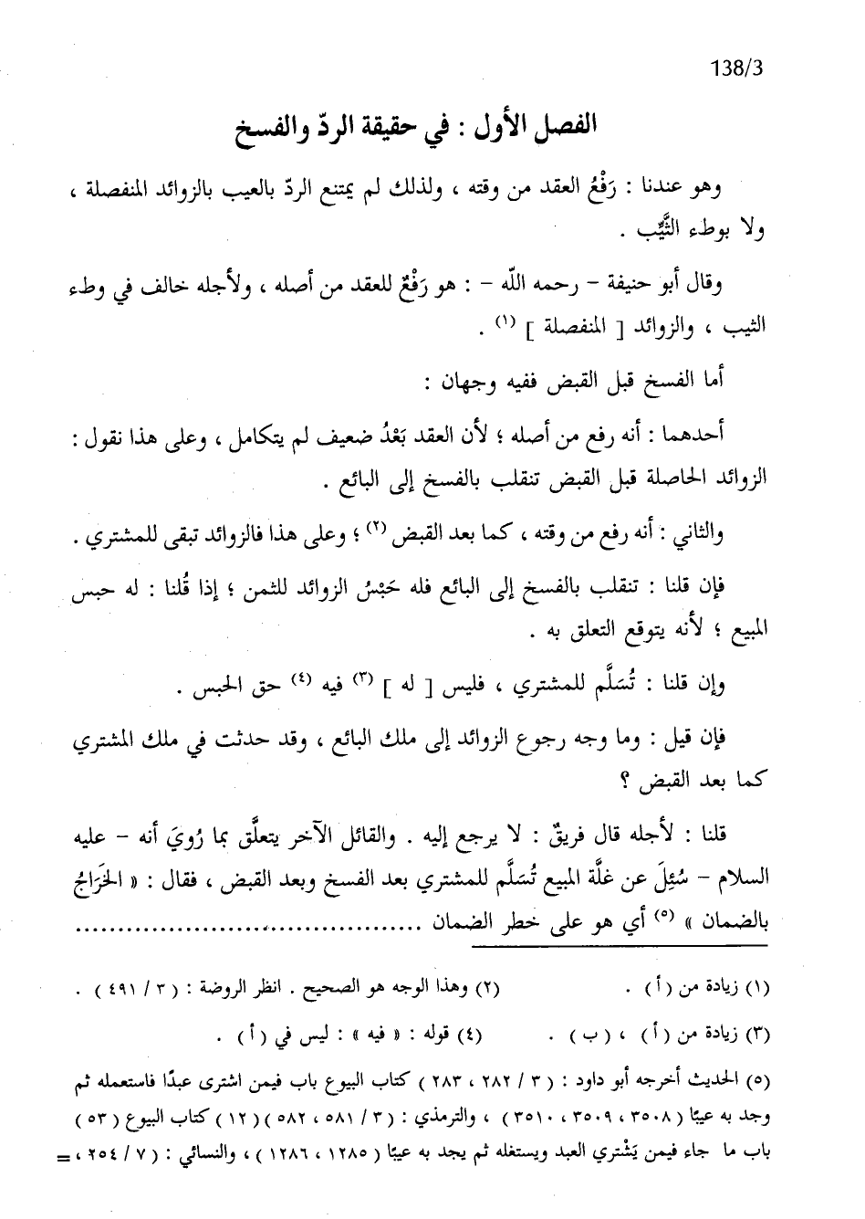 قُلْنَا لأَجله قَالَ فريق لَا يرجع إِلَيْهِ وَالْقَائِل الآخر يتَعَلَّق بِمَا رُوِيَ انه عَلَيْهِ السَّلَام سُئِلَ عَن غلَّة الْمَبِيع تسلم للْمُشْتَرِي بعد الْفَسْخ وَبعد الْقَبْض فَقَالَ الْخراج بِالضَّمَانِ أَي هُوَ على خطر الضَّمَان
