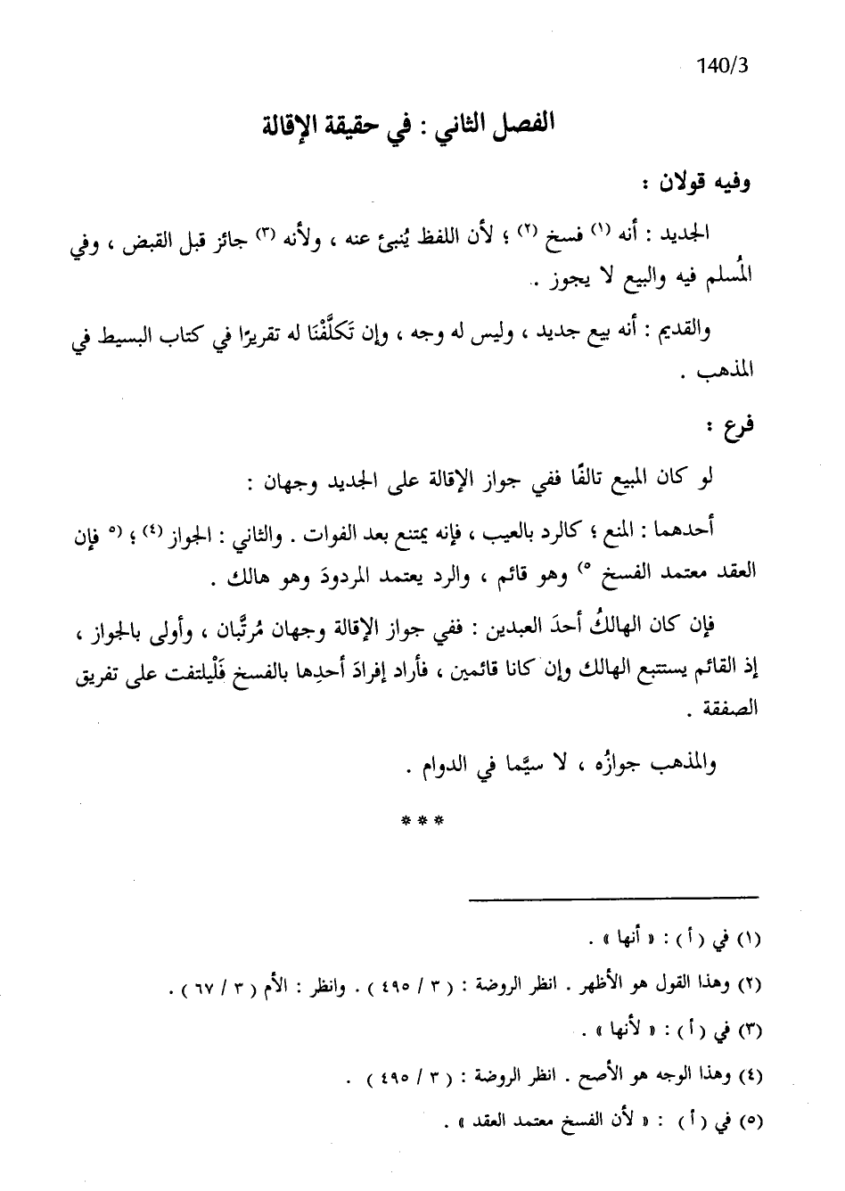 الْفَصْل الثَّانِي فِي حَقِيقَة الْإِقَالَة وَفِيه قَولَانِ