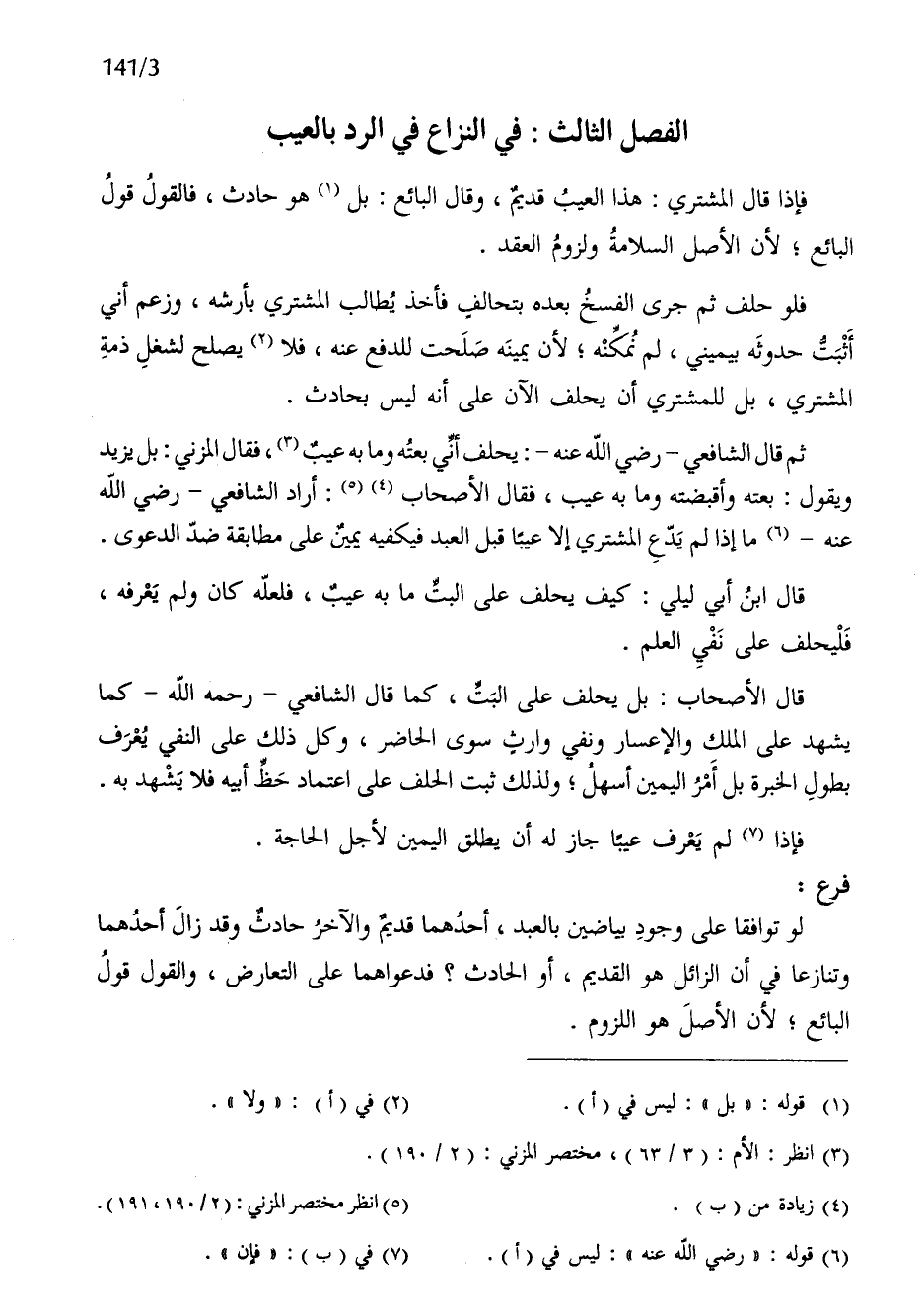 الْفَصْل الثَّالِث فِي النزاع فِي الرَّد بِالْعَيْبِ