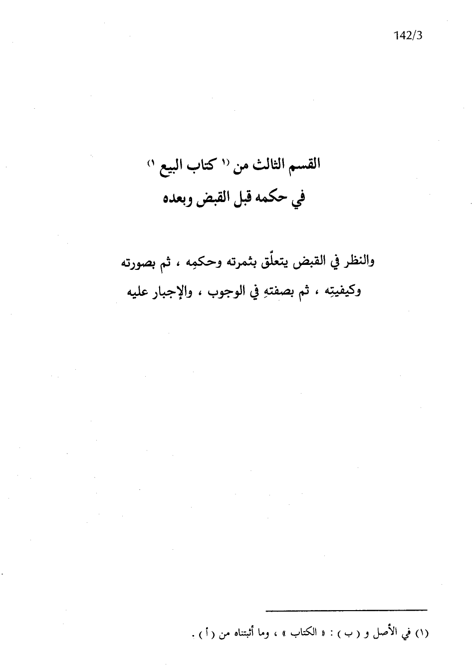 الْقسم الثَّالِث من كتاب البيع فِي حكمه قبل الْقَبْض وَبعده