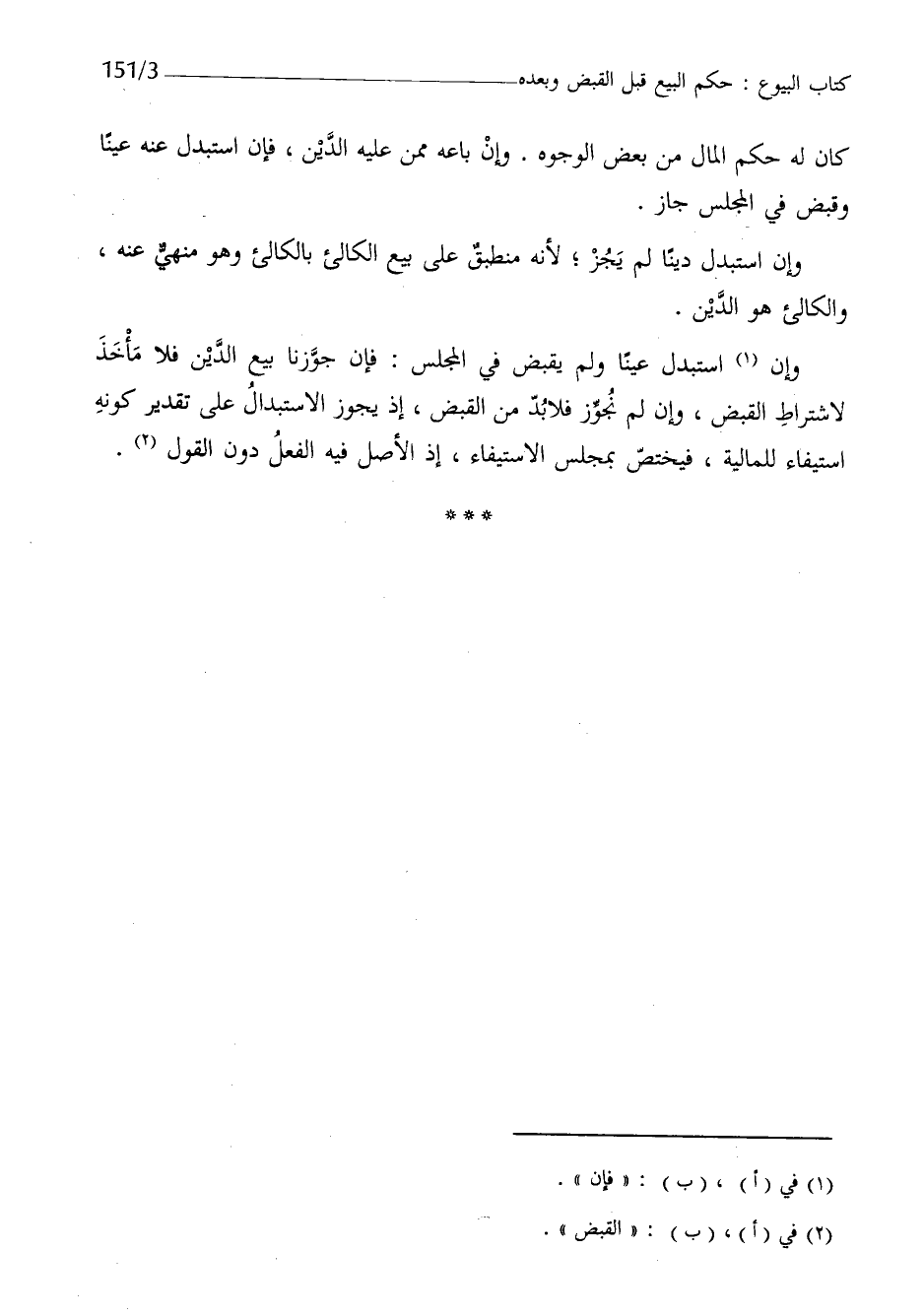 كَانَ لَهُ حكم المَال من بعض الْوُجُوه وَإِن بَاعه مِمَّن عَلَيْهِ الدّين فَإِن استبدل عَنهُ عينا وَقبض فِي الْمجْلس جَازَ