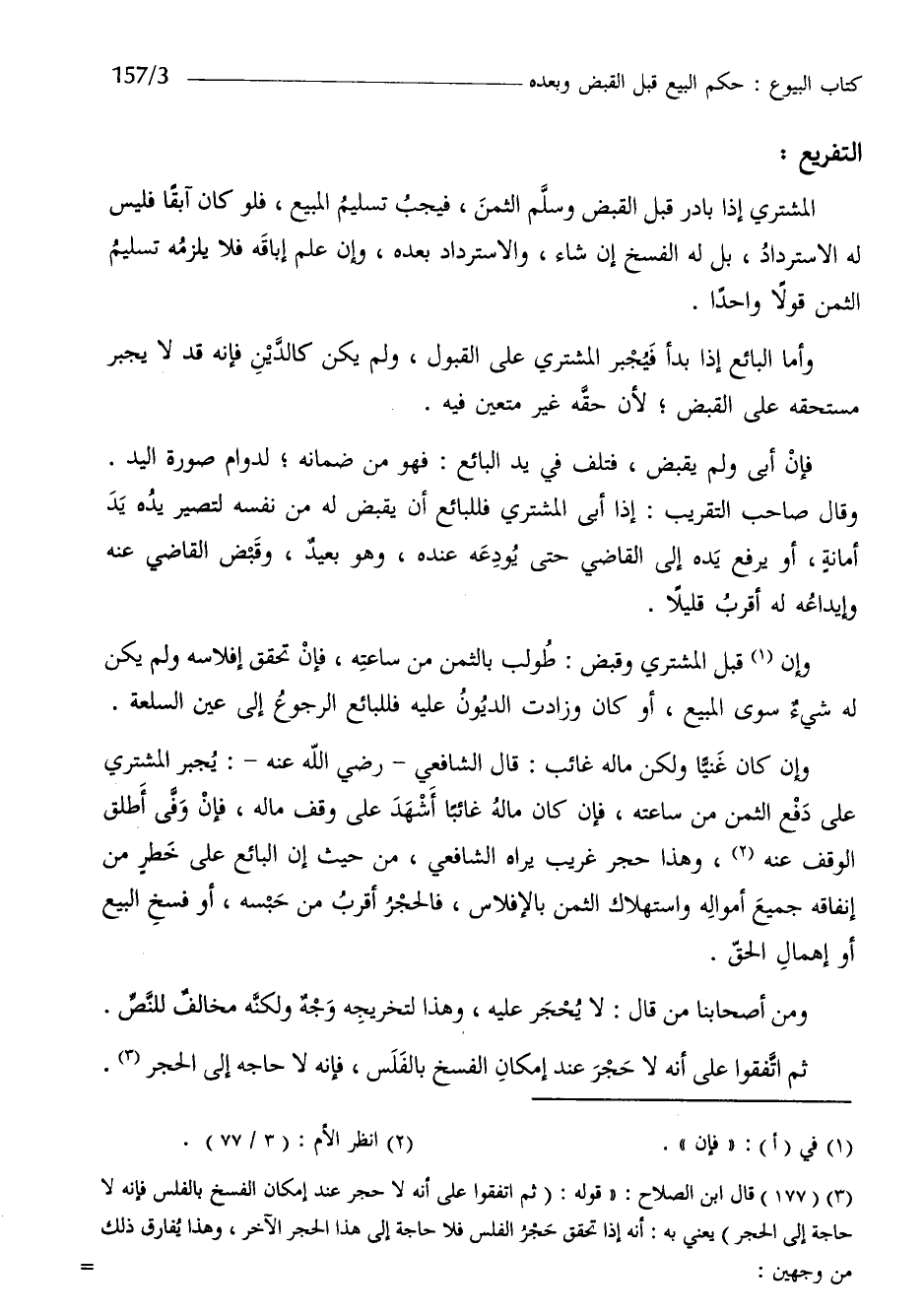 وَمن أَصْحَابنَا من قَالَ لَا يحْجر عَلَيْهِ وَهَذَا لتخريجه وَجه وَلكنه مُخَالف للنَّص ثمَّ اتَّفقُوا على أَنه لَا حجر عِنْد إِمْكَان الْفَسْخ بالفلس فَإِنَّهُ لَا حَاجَة إِلَى الْحجر