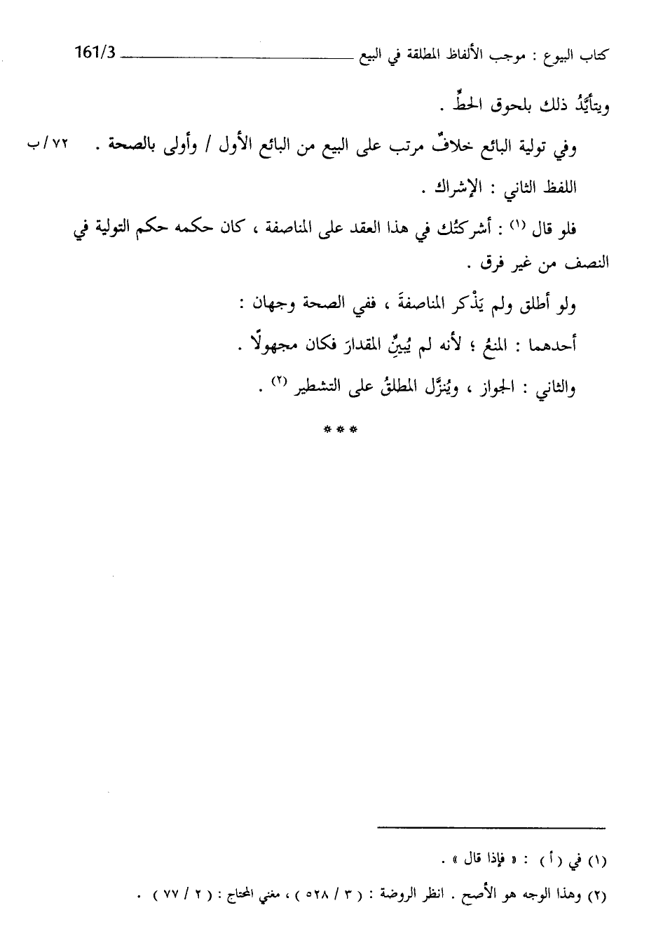 وَالثَّانِي الْجَوَاز وَينزل الْمُطلق على التشطير