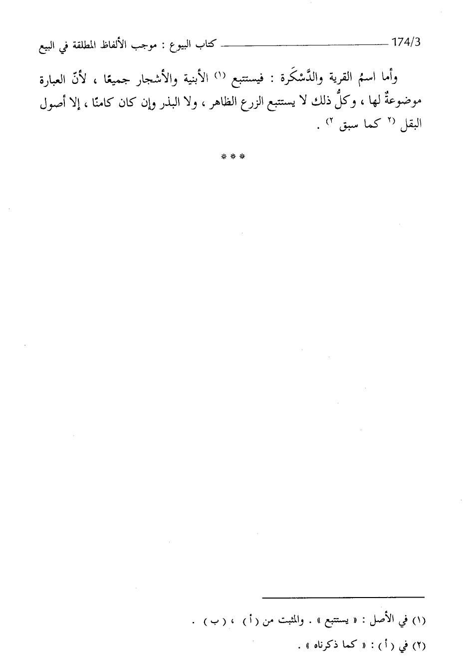 وَأما اسْم الْقرْيَة والدسكرة فيستتبع الْأَبْنِيَة وَالْأَشْجَار جَمِيعًا لَان الْعبارَة مَوْضُوعَة لَهَا وكل ذَلِك لَا يستتبع الزَّرْع الظَّاهِر وَلَا الْبذر وان كَانَ كامنا إِلَّا أصُول البقل كَمَا سبق