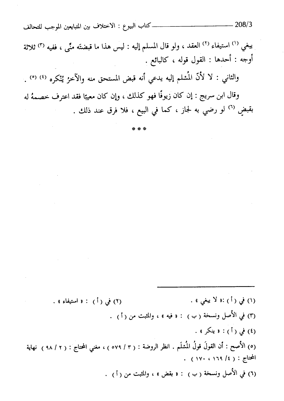 يَبْغِي اسْتِيفَاء العقد وَلَو قَالَ الْمُسلم إِلَى لَيْسَ هَذَا مَا قَبضته مني فَفِيهِ ثَلَاثَة أوجه أَحدهَا القَوْل قَوْله كالبائع