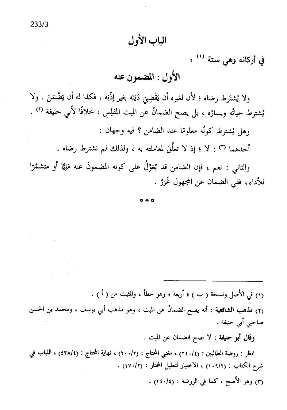 - صَلَّى اللَّهُ عَلَيْهِ وَسَلَّم َ - الْبَاب الأول فِي أَرْكَانه وَهِي سِتَّة - صَلَّى اللَّهُ عَلَيْهِ وَسَلَّم َ -
