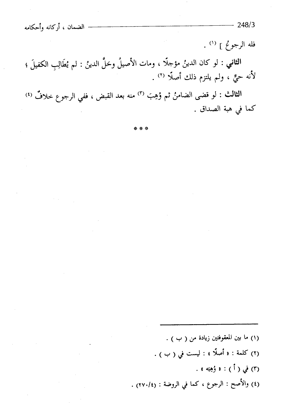 الثَّالِث لَو قضى الضَّامِن ثمَّ وهب مِنْهُ بعد الْقَبْض فَفِي الرُّجُوع خلاف كَمَا فِي هبة الصَدَاق