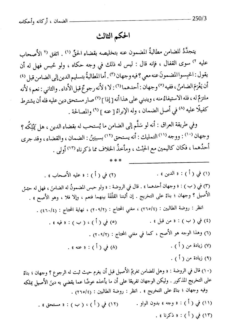 يَتَجَدَّد للضامن مُطَالبَة الْمَضْمُون عَنهُ بتخليصه بِقَضَاء الْحق اتّفق الْأَصْحَاب عَلَيْهِ سوى الْقفال فانه قَالَ لَيْسَ لَهُ ذَلِك فِي وَجه حَكَاهُ وَلَو حبس فَهَل لَهُ أَن يَقُول احْبِسُوا الْمَضْمُون عَنهُ معي فِيهِ وَجْهَان أما الْمُطَالبَة بِتَسْلِيم الدّين إِلَى الضَّامِن قبل أَن يغرم الضَّامِن فَفِيهِ وَجْهَان أَحدهمَا لَا لانه رُجُوع قبل الْأَدَاء وَالثَّانِي نعم لانه مُلْتَزم لَهُ فَلهُ الِاسْتِيفَاء مِنْهُ وَيَنْبَنِي على هَذَا انه إِذا صَار مُسْتَحقّ دين عَلَيْهِ فَلهُ أَن يشْتَرط كَفِيلا عَلَيْهِ فِي اصل الضَّمَان وَله الْإِبْرَاء عَنهُ والمصالحة