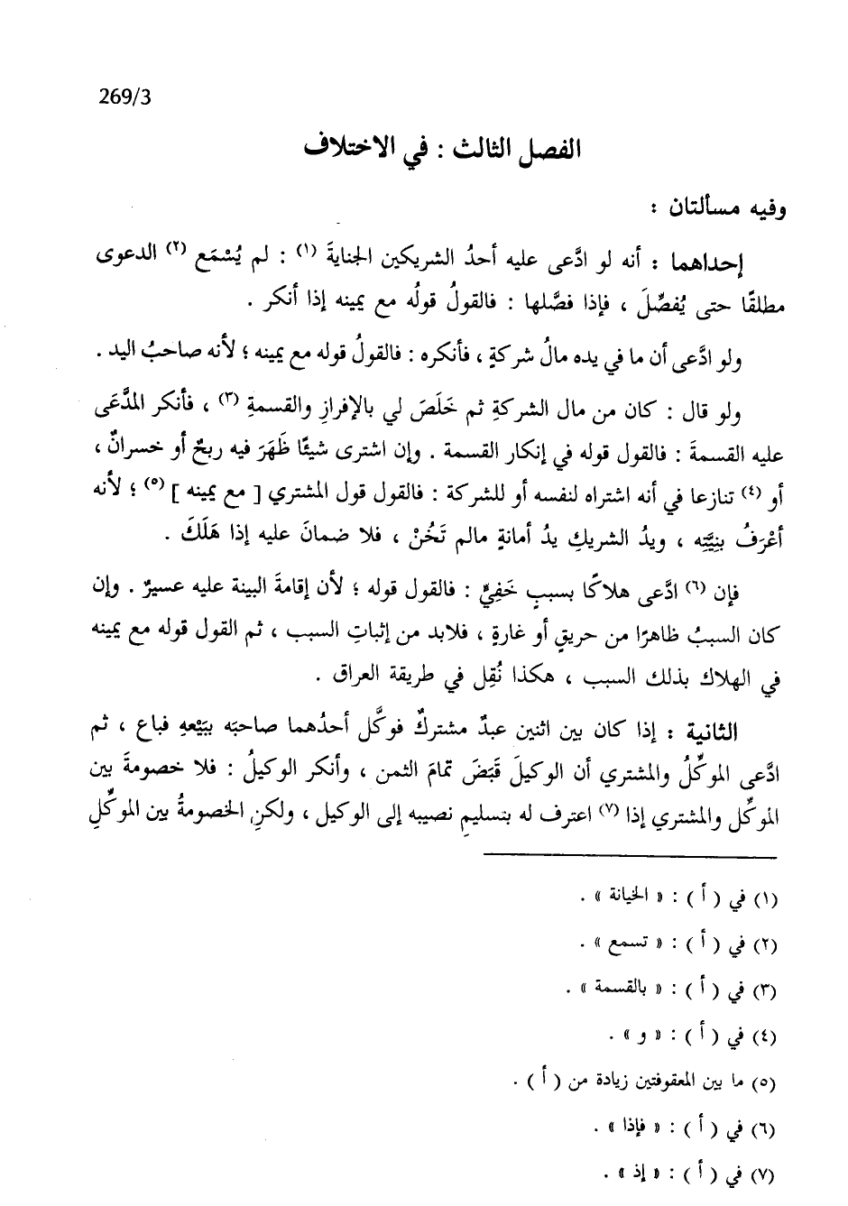 الْفَصْل الثَّالِث فِي الِاخْتِلَاف وَفِيه مَسْأَلَتَانِ