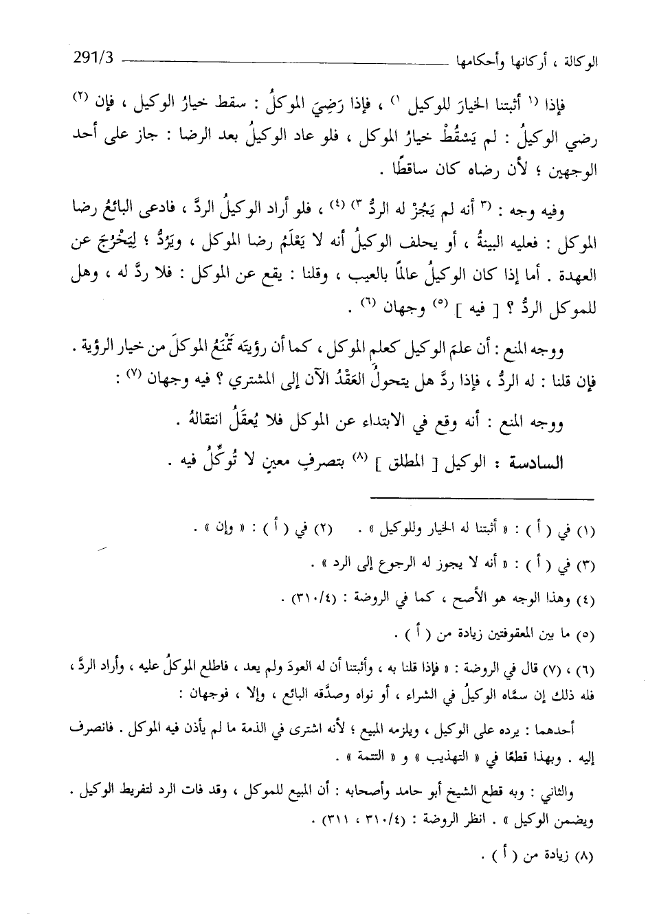 السَّادِسَة الْوَكِيل الْمُطلق بِتَصَرُّف معِين لَا توكل فِيهِ