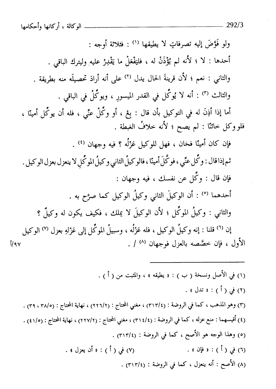 وَلَو فوض إِلَيْهِ تَصَرُّفَات لَا يطيقها فَثَلَاثَة أوجه