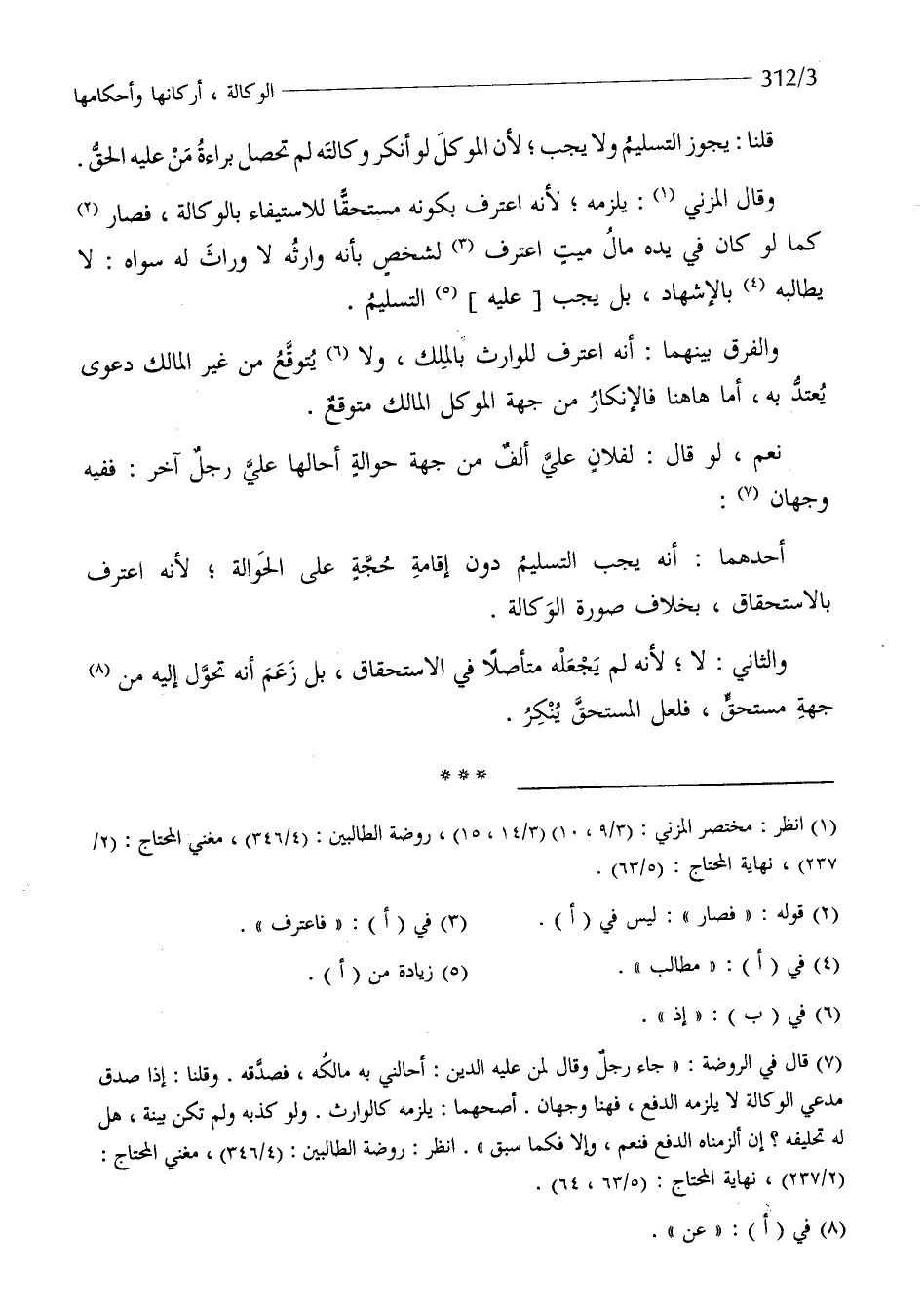وَقَالَ الْمُزنِيّ يلْزمه لِأَنَّهُ اعْترف بِكَوْنِهِ مُسْتَحقّا للاستيفاء بِالْوكَالَةِ فَصَارَ كَمَا لَو كَانَ فِي يَده مَال ميت اعْترف لشخص بِأَنَّهُ وَارثه لَا وراث لَهُ سواهُ لَا يُطَالِبهُ بِالْإِشْهَادِ بل يجب عَلَيْهِ التَّسْلِيم