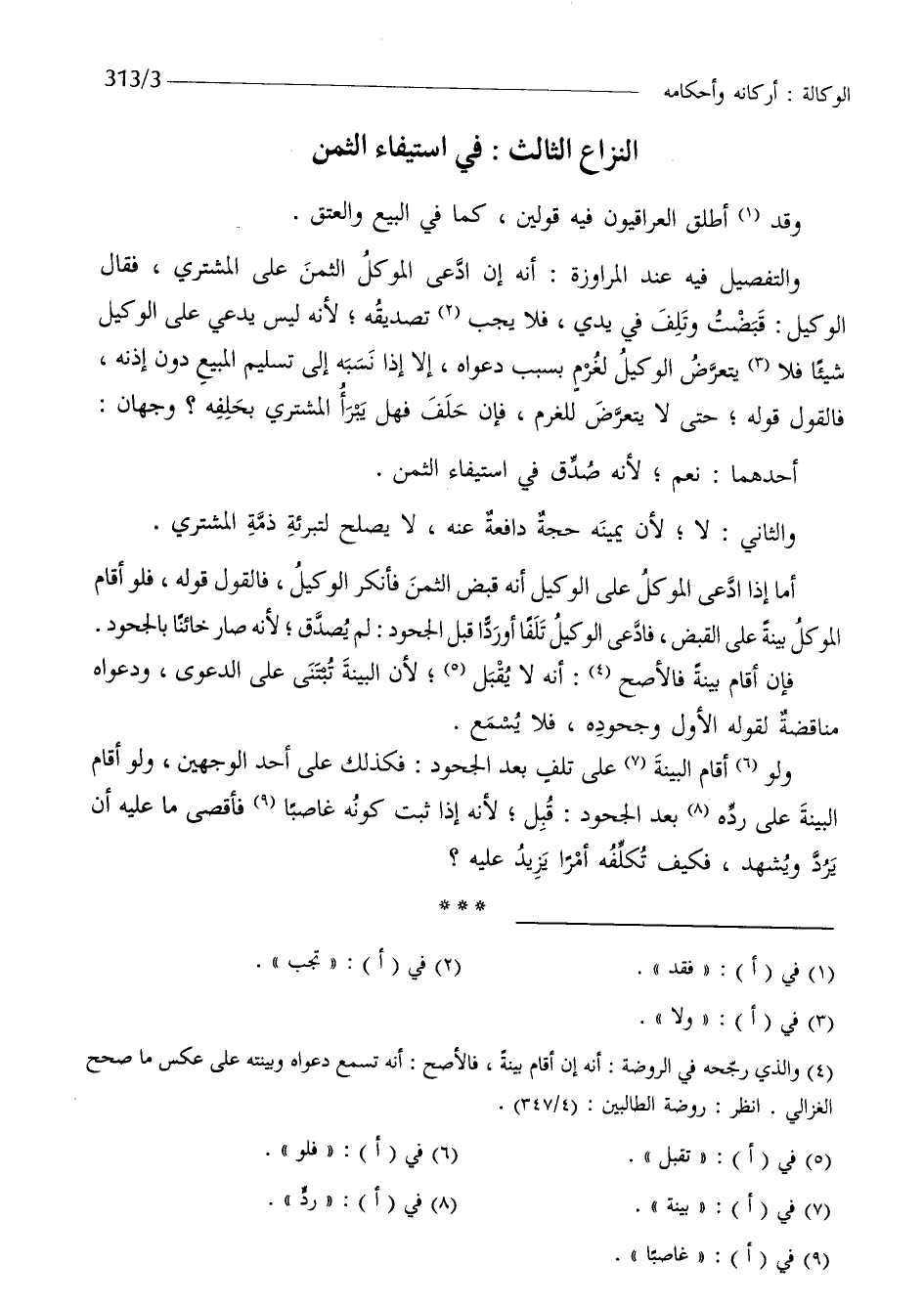النزاع الثَّالِث فِي اسْتِيفَاء الثّمن