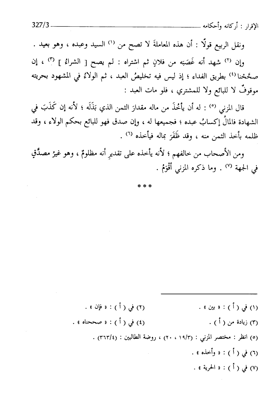 قَالَ الْمُزنِيّ لَهُ أَن يَأْخُذ من مَاله مِقْدَار الثّمن الَّذِي بذله لِأَنَّهُ إِن كذب فِي الشَّهَادَة فَالْمَال إكساب عَبده فجميعها لَهُ وَإِن صدق فَهُوَ للْبَائِع بِحكم الْوَلَاء وَقد ظلمه بِأخذ الثّمن مِنْهُ وَقد ظفر بِمَالِه فَيَأْخذهُ