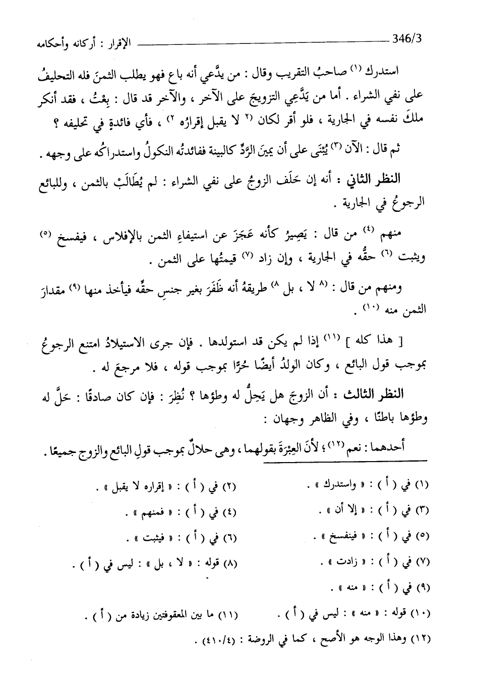 النّظر الثَّانِي أَنه إِن حلف الزَّوْج نفي على الشِّرَاء لم يُطَالب بِالثّمن وَللْبَائِع الرُّجُوع فِي الْجَارِيَة